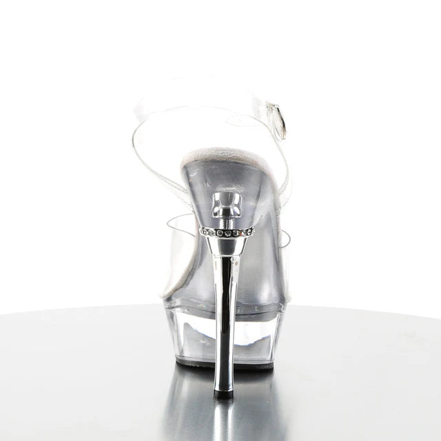 Ankle Strap Sandal Featuring Chrome Heel and Jewel Accent