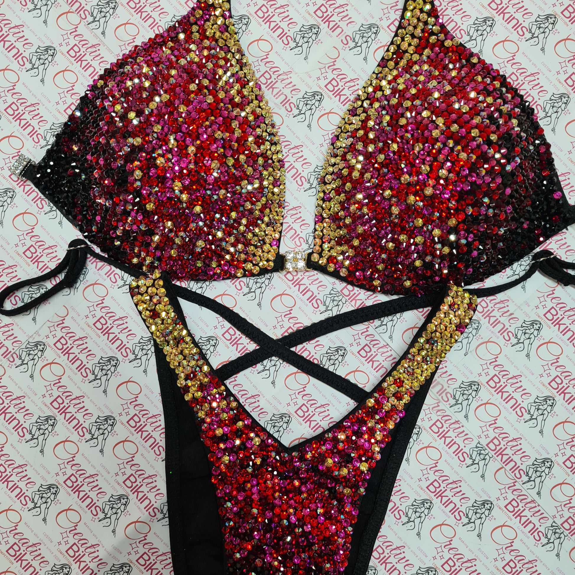 This design is still an ULTRA so the 1000's of Crystals are hand placed approx. 1mm apart across the entire bikini For the ultimate sparkle.
