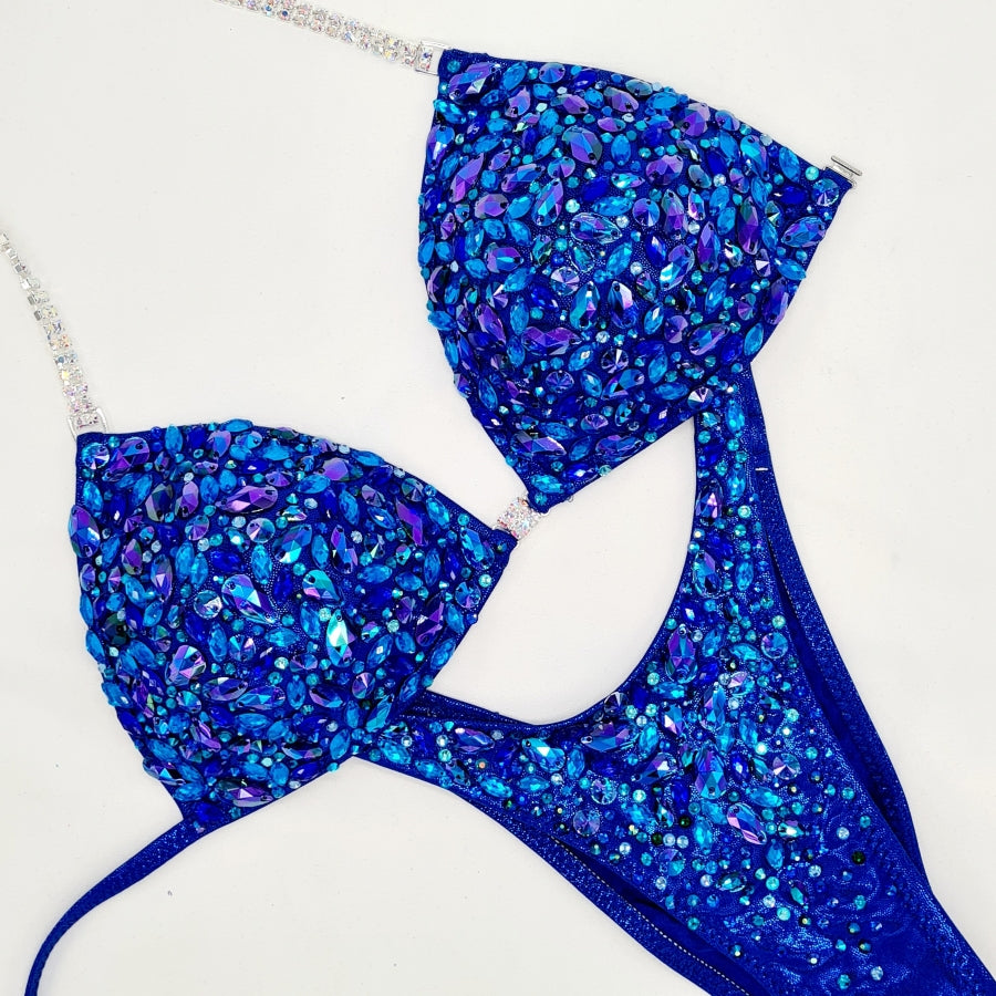The Mosaic is a Incredible combination of Large and small Crystals , and beautiful Feature stones, Its both Super sparkly and Textural on stage giving you a point of difference in a big line up of athletes. The Coverage of crystal is FULL, with only a hint of the base fabric showing though. Our designers will blend a gorgeous combination of crystals in your chosen colour palette. No two Mosaics ever are the same!!