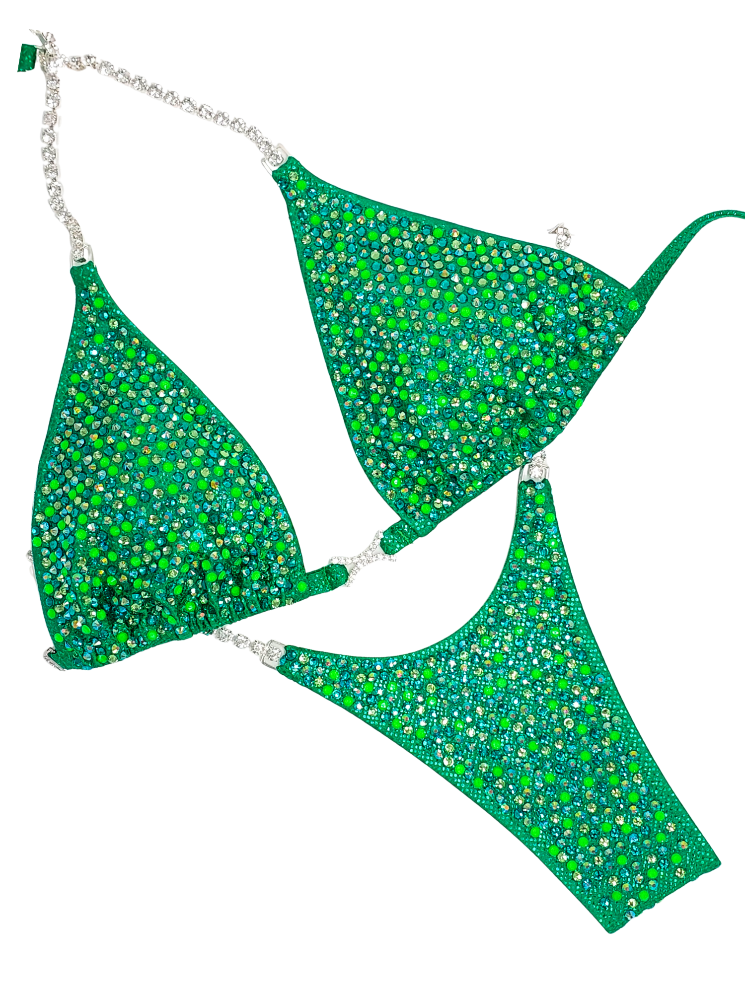 Embellishment Fluro green, grass green and emerald with silver crystals