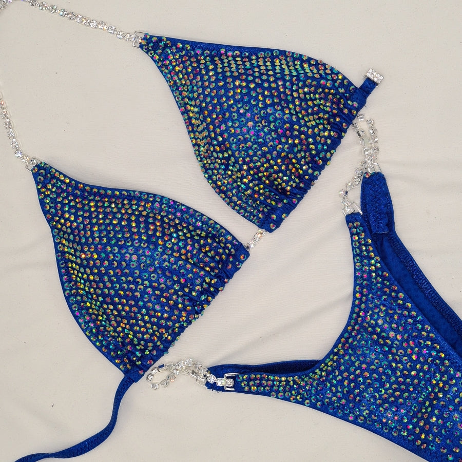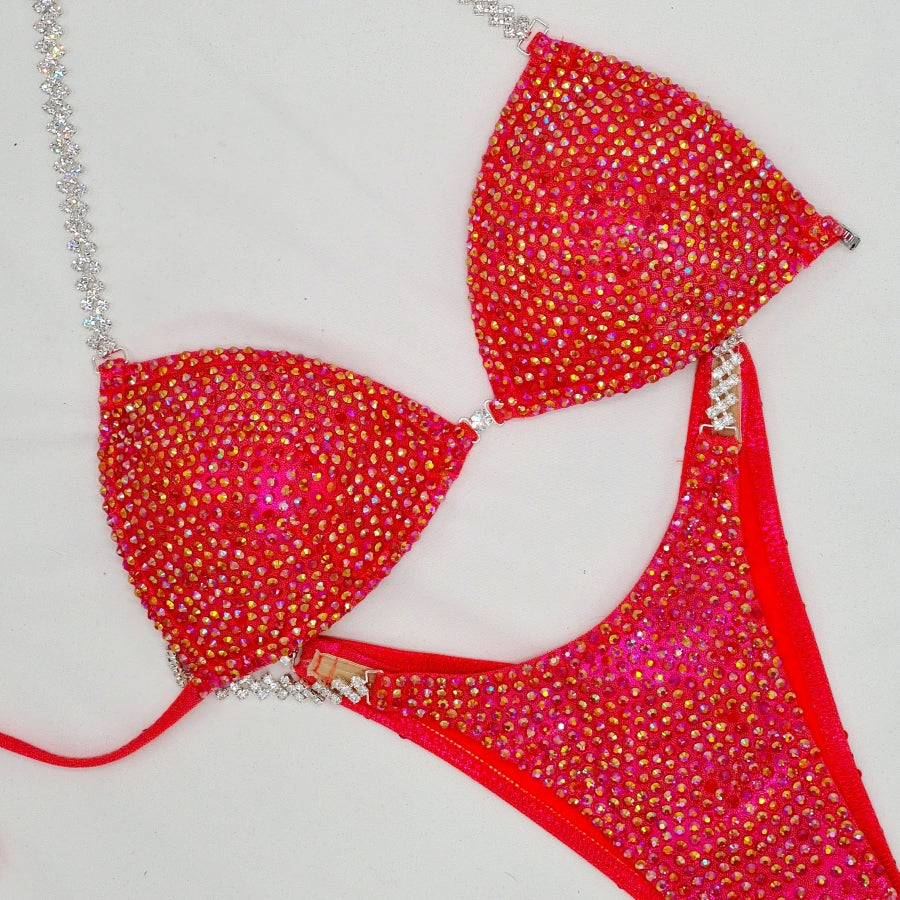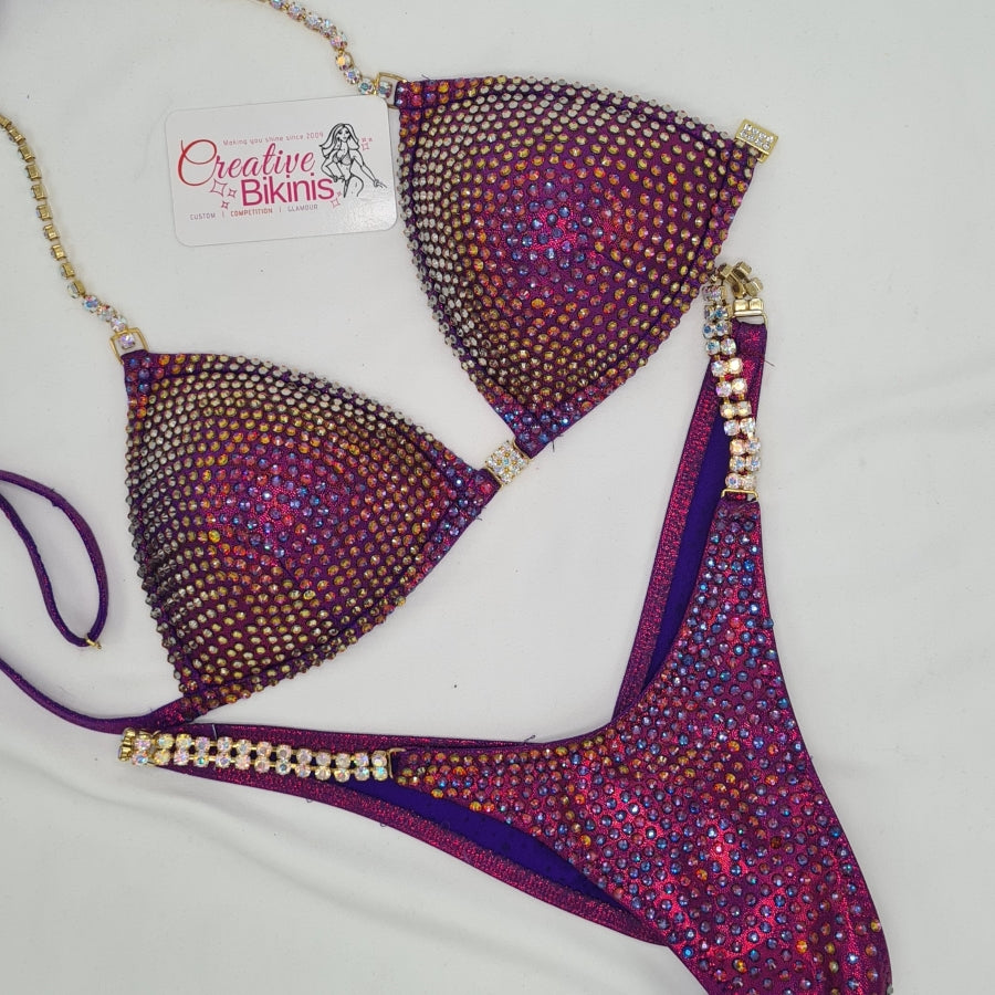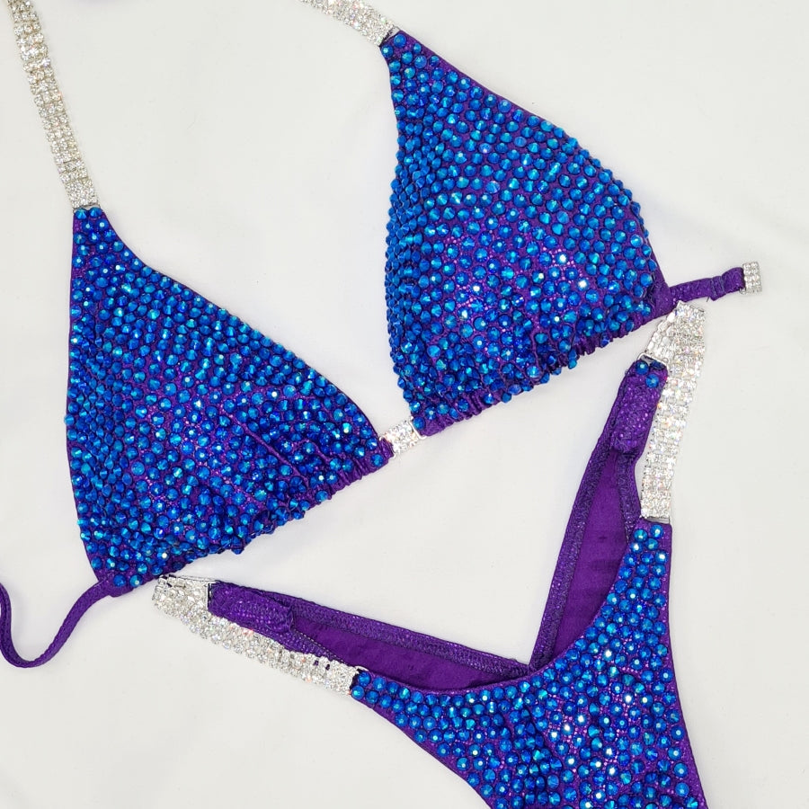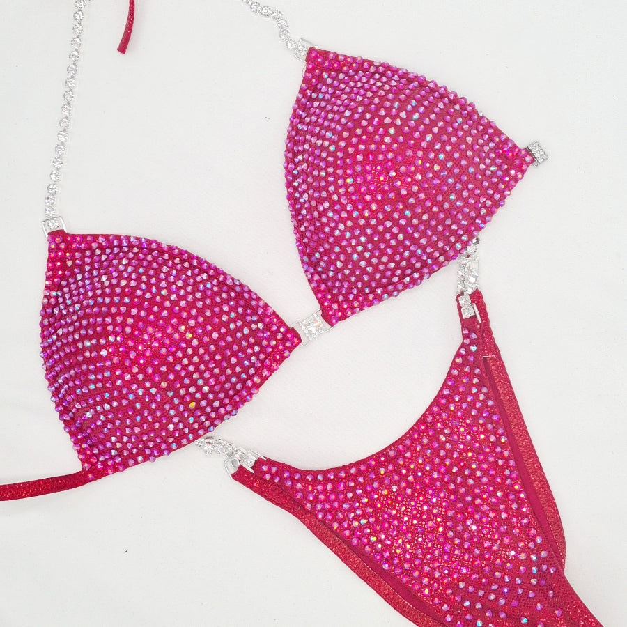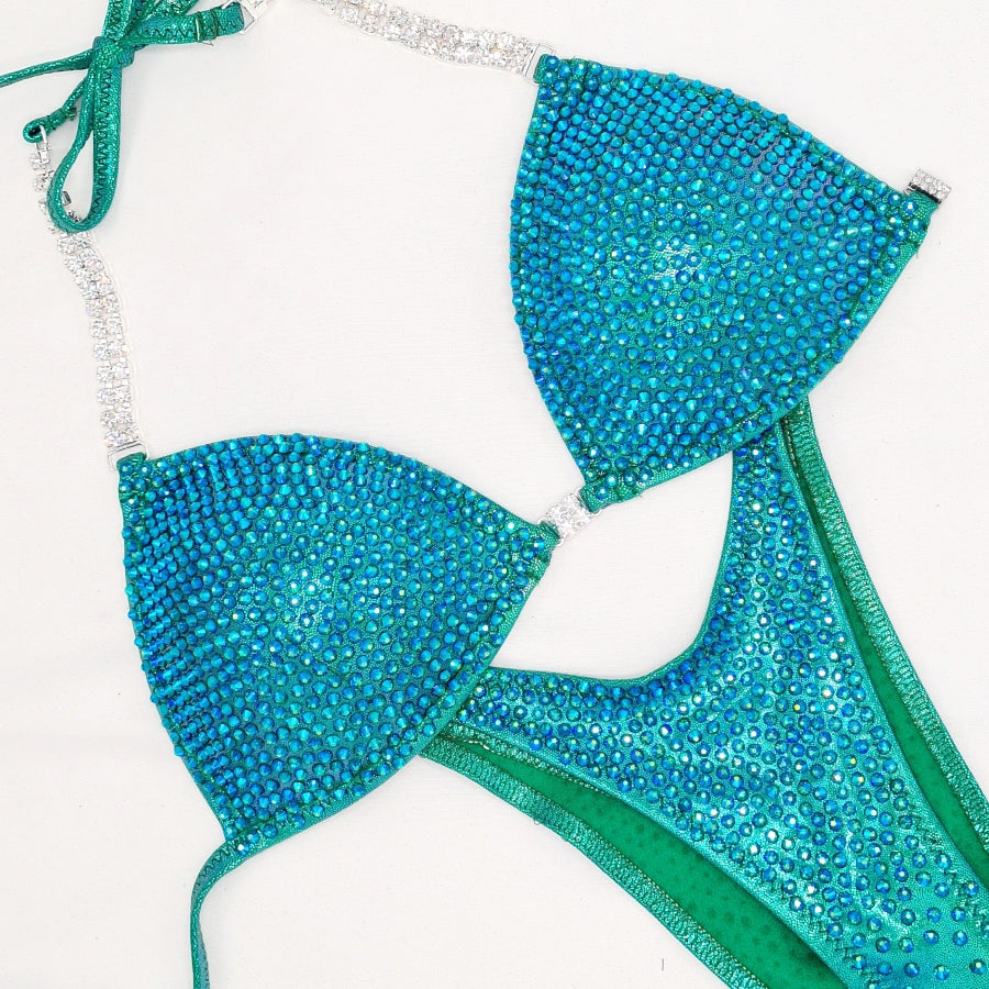 With the SPACED Ultra Our clever bikini designers hand place 1000's of Crystals approximately 2mm apart over the entire bikini. This allows a little more fabric to show through. It gives a dynamic colour and shine on stage.